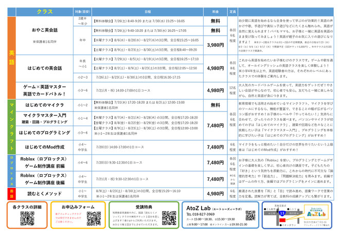 毎年恒例の夏の短期教室・体験会、今年も開催します!この機会にぜひお越しください!!