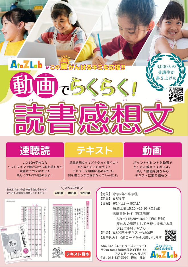 例年夏に実施している「らくらく読書感想文」の短期講座、今年は少し早い6月から開講します!